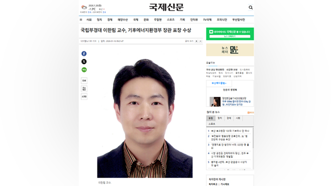 국립부경대 이한림 교수, 기후에너지환경부 장관 표창 수상